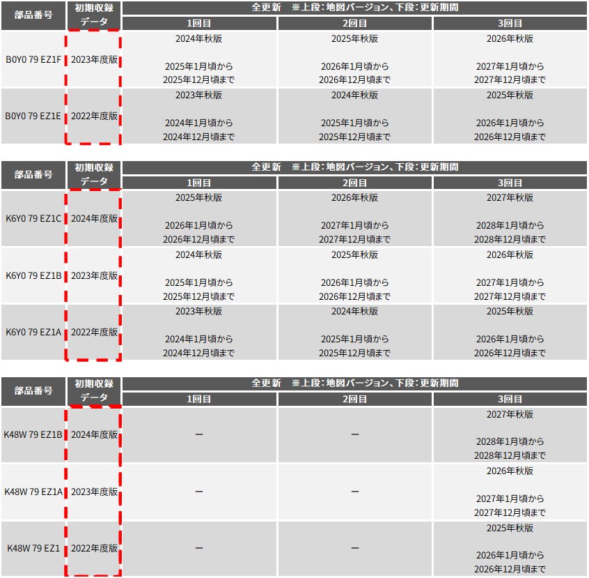 全更新はそれぞれ次年度の地図データの配信開始まで、更新が可能となります。