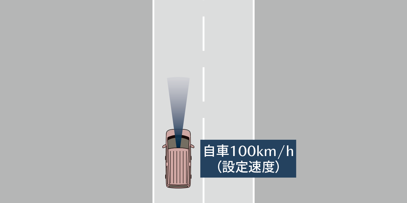 - 〈作動条件〉先行車を検知せず約40km/h以上、または先行車を検知して約1km/h以上で走行中にシステムをONにした場合。