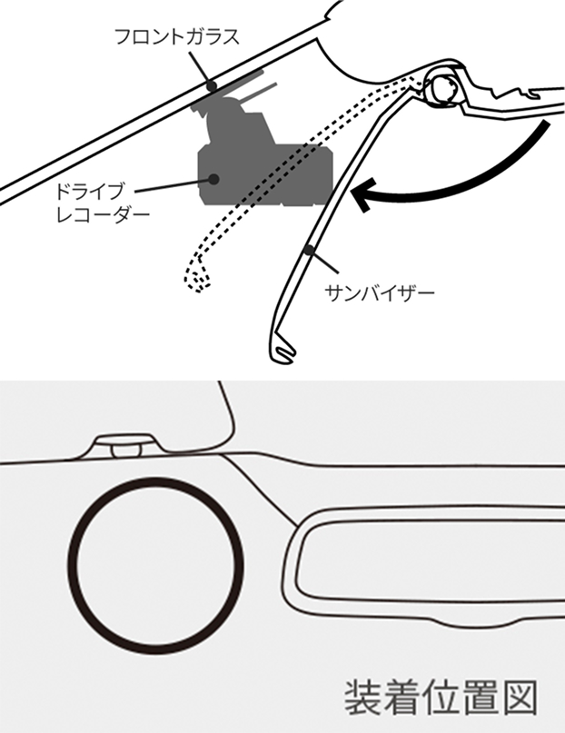 ※ドライブレコーダーを装着した場合、サンバイザーは完全には開きません。