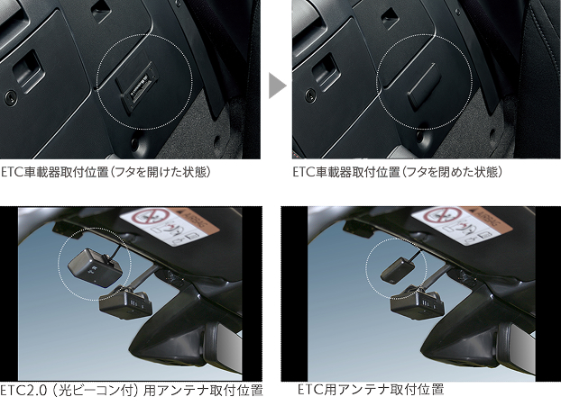 ロードスターはコンパクトなボディに車両部品が綿密にレイアウトされており、ドライバーや同乗者の居住性、貴重な収納スペースも犠牲にしないという信念に基づきレイアウト検討を繰り返し、「ロードスターは助手席後方、ロードスターRFは運転席後方」というレイアウト位置にたどり着きました。また、開閉蓋を設け防犯性にも配慮した仕様としています。ロングドライブに欠かせないETC2.0(DSRC)/ETC車載器が、お客様とロードスターのかけがえのないカーライフをサポートします。