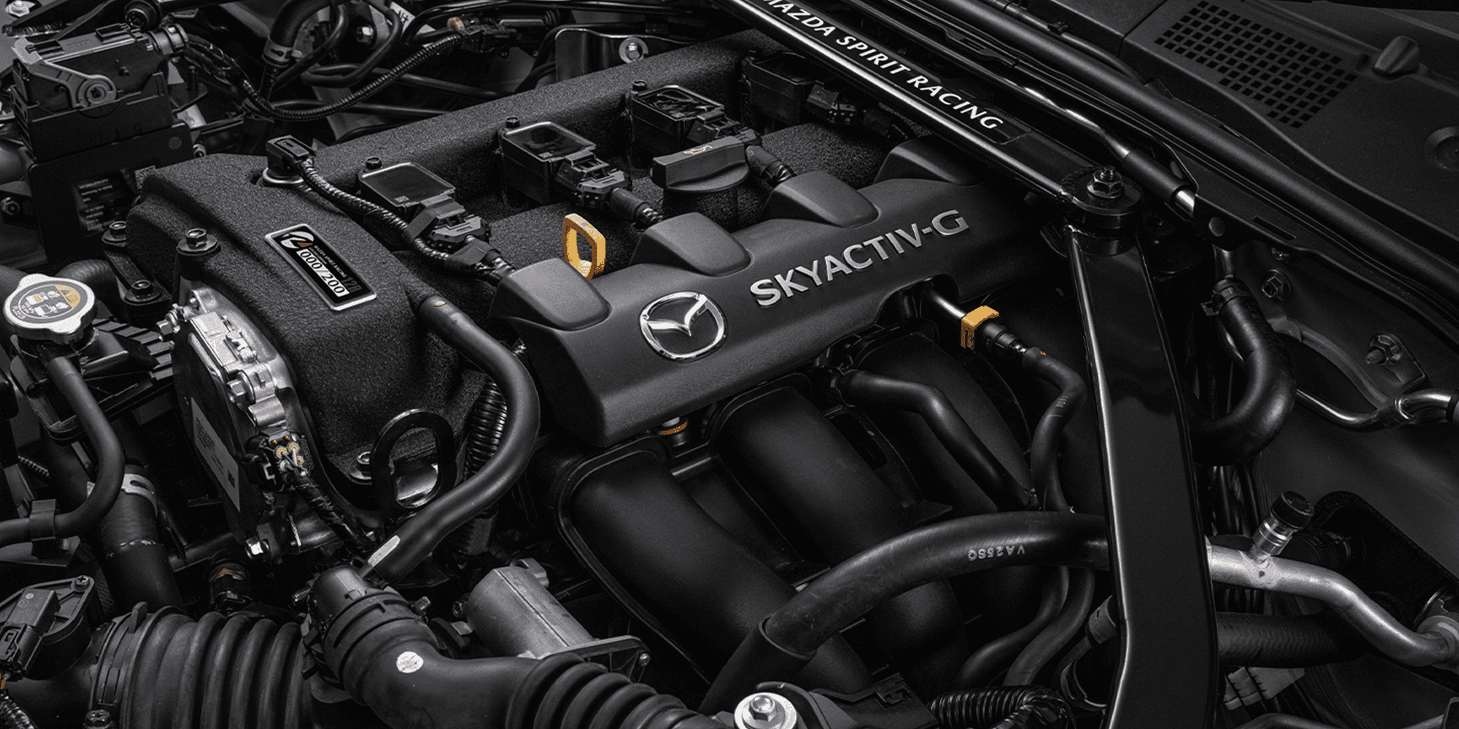 MAZDA SPIRIT RACINGのロゴ を特別にあしらったタワーバー。アルミ製を採用し、より軽量化。サーキットなどの高速域でのハンドリングを向上させています。
