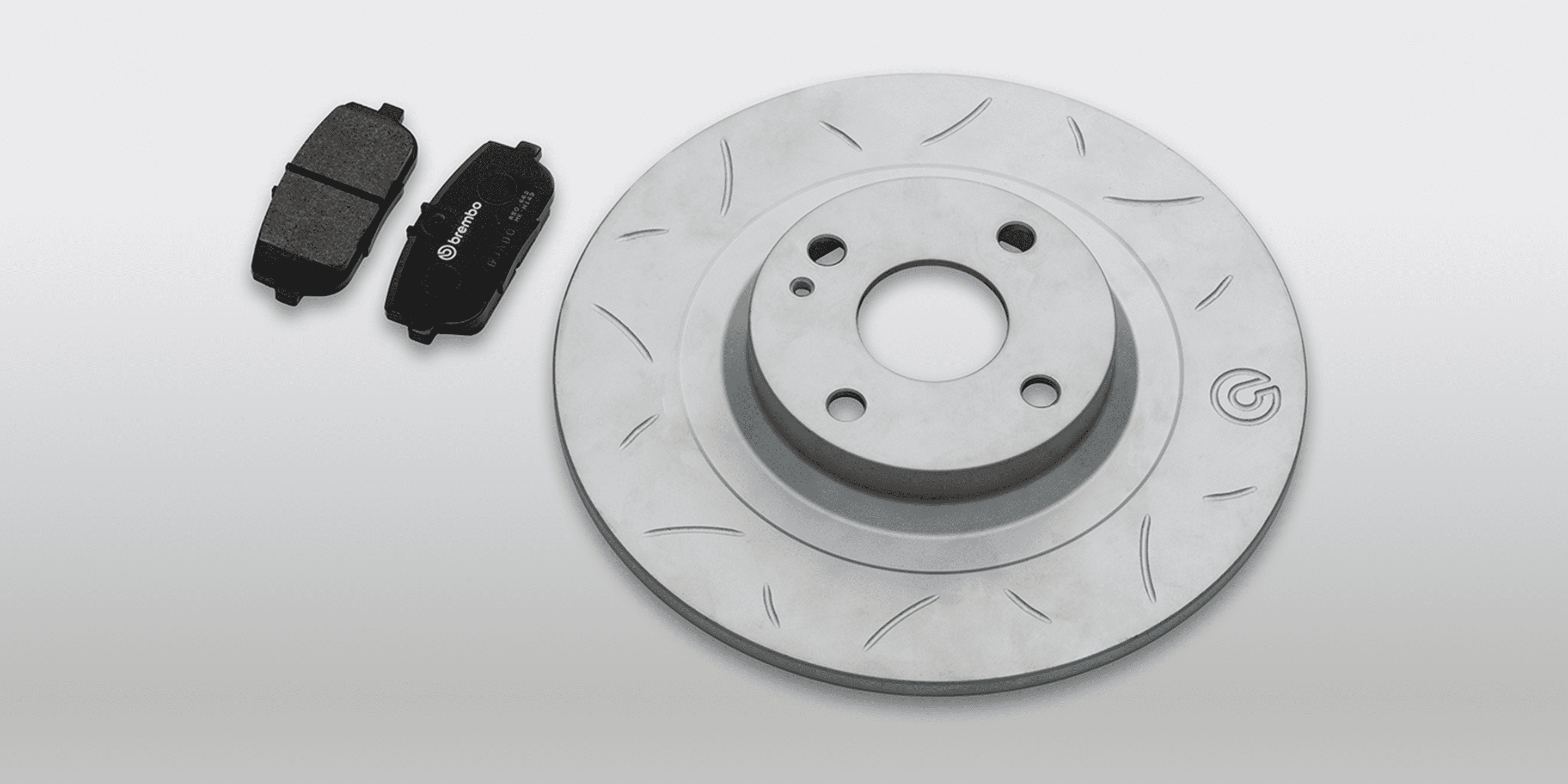 コントロール性と寿命を両立させた「スポーツ走行時の安心を支える」ブレーキセット(スリットローター&スポーツパッド)です。