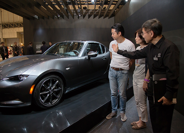 マツダは、「MAZDA DESIGN ELEGANCE」というテーマで、マツダの歴代のヘリテージカーや「MX-5 RF」の展示、